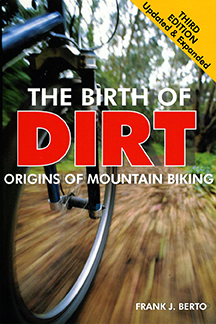 The Birth of Dirt, NEW 3rd Edition, revised and updated. Frank Berto's enduring effort to trace the true history of the "invention" of the mountain bike in Marin County is again brought fully up to date with the latest news on the origins of the bike and the sport.